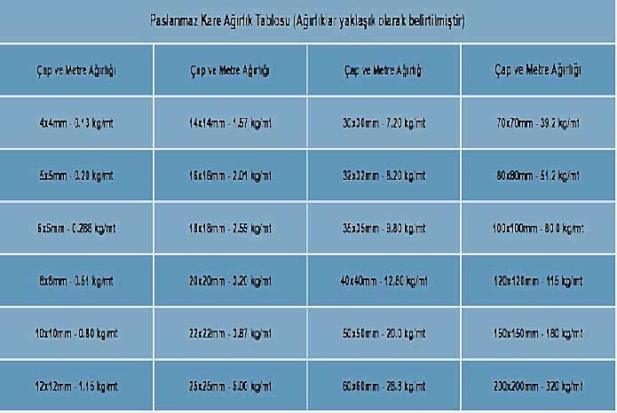 - Paslanmaz Çelik Kare
